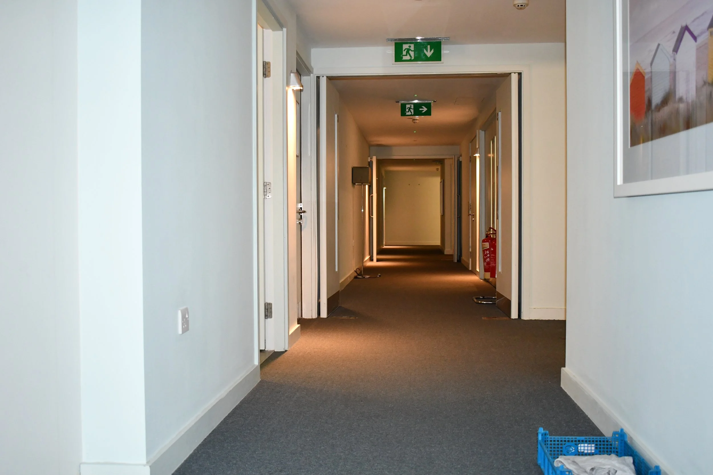 behind the bathroom door